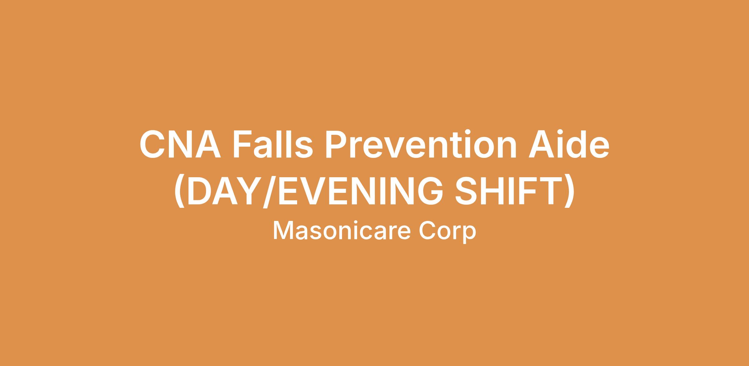 CNA Falls Prevention Aide (DAY/EVENING SHIFT)