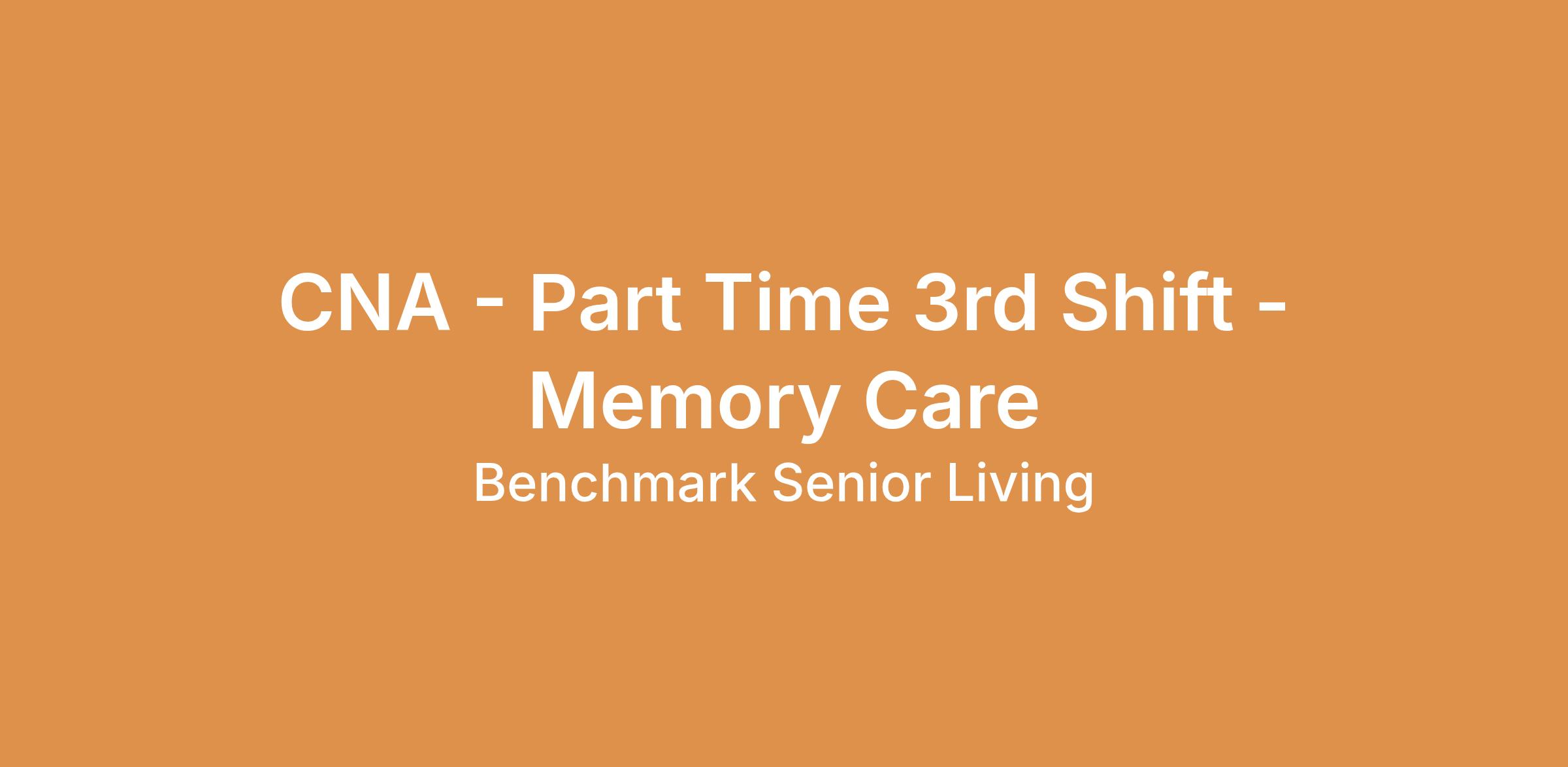 Benchmark at South Farms is hiring Part Time CNA for 3rd Shift, 11p-7a, with an Every Other weekend rotation. Starting hourly rates is $19.25