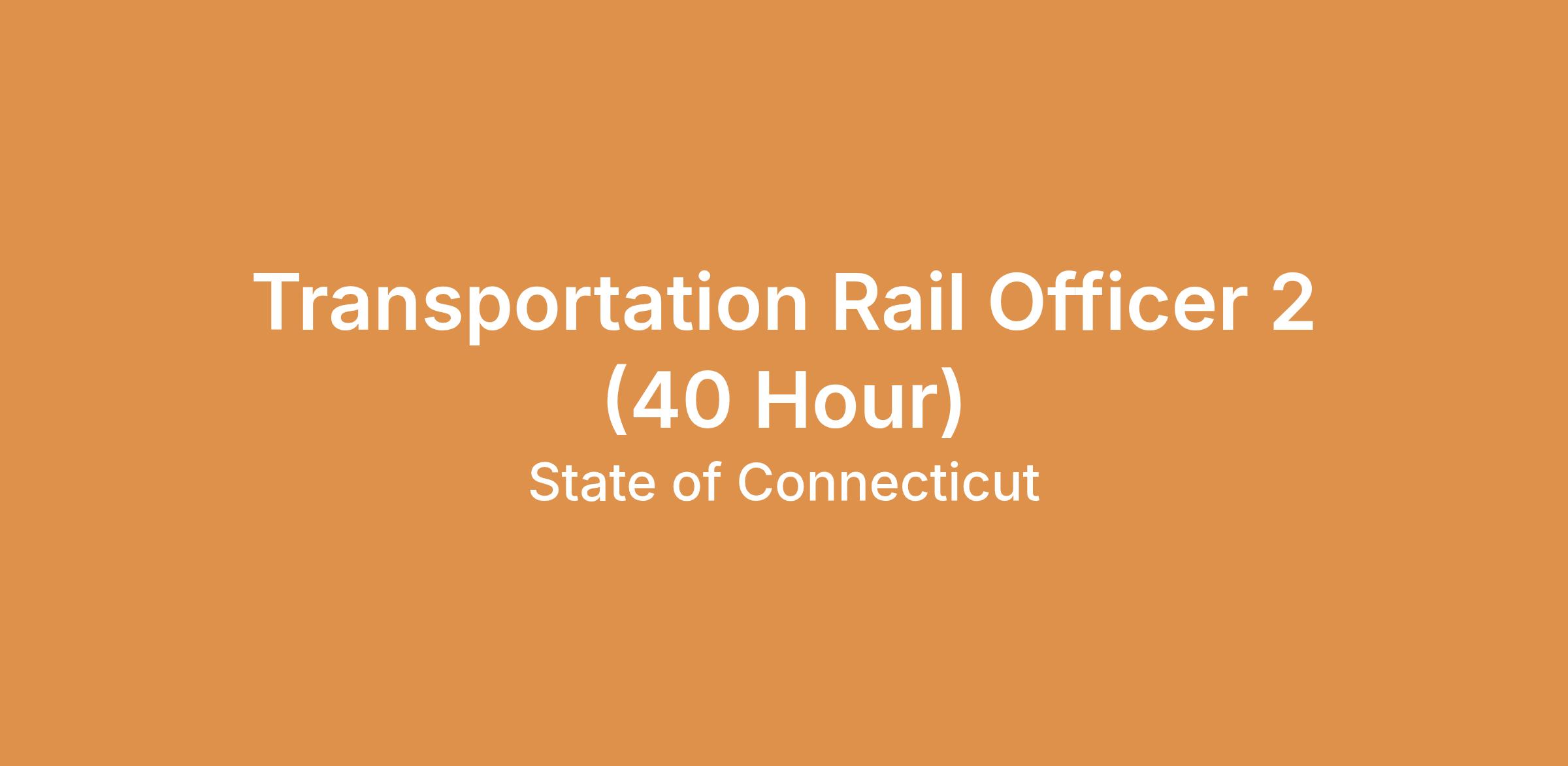 This image shows a career progression pathway with the State of Connecticut: starting with Rail Officer 1, with a focus on Rail Officer 2, ending with Transportation Supervising Rail Officer.